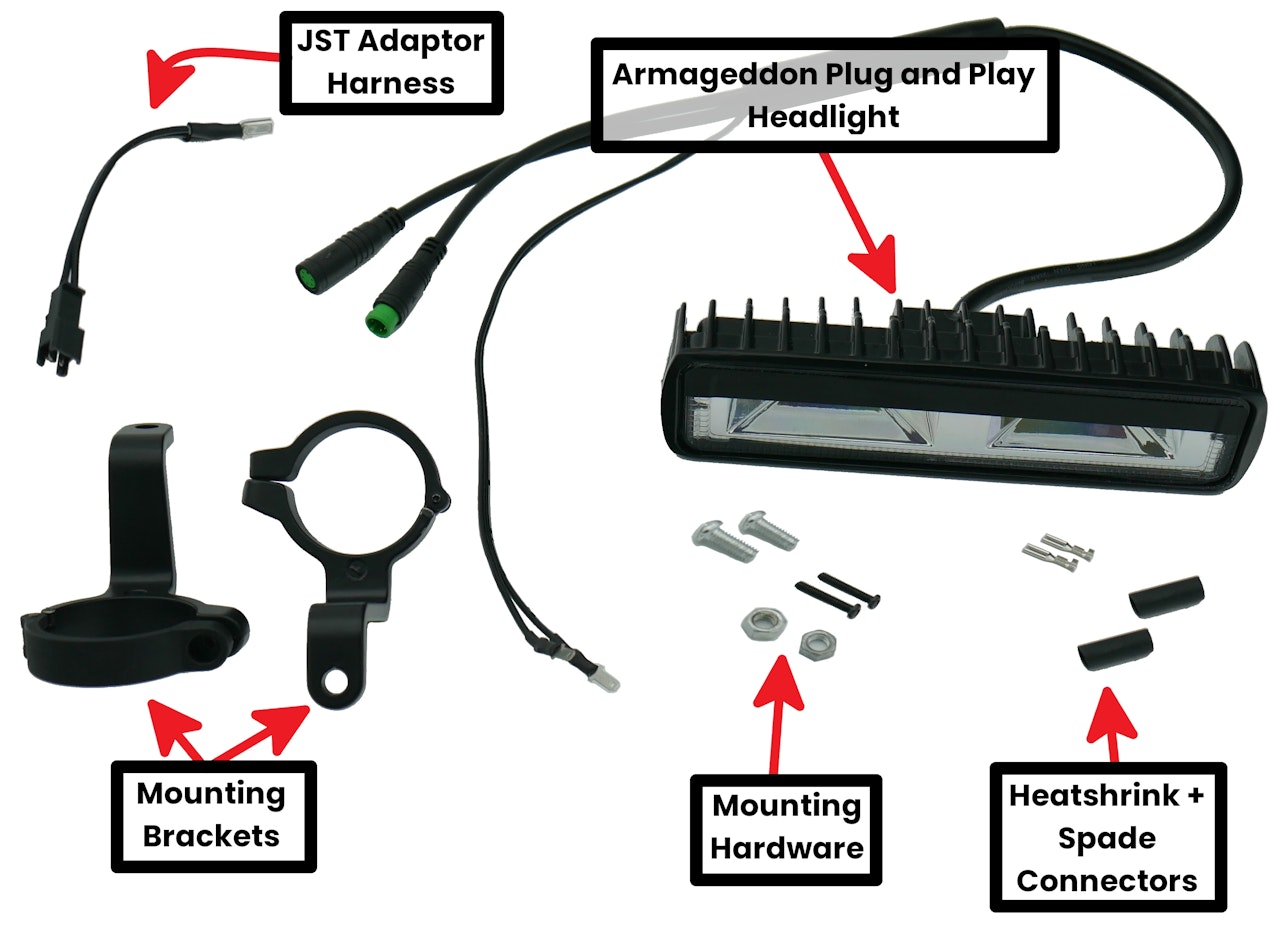 Unpack your Armageddon headlight from its packaging and confirm you have the required parts for your installation.