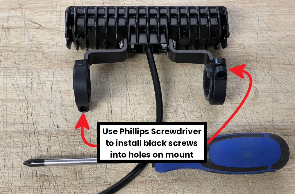 Unclamp the handlebar brackets and clamp them onto the handlebars. Secure them with the included black screws and a Phillips screwdriver.