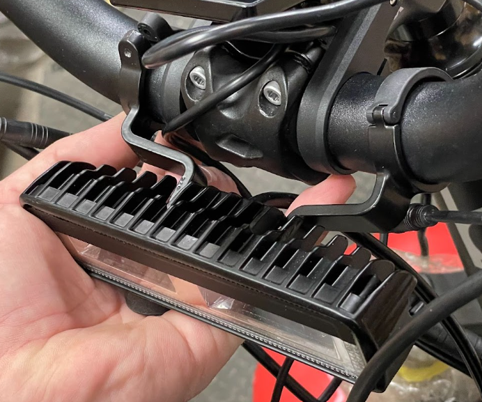 To start you must remove the eBike's stock headlight. Do this by reversing the steps you followed to install the headlight initially assembling your eBike! With the headlight physically removed from the bike but still plugged in move to the next step.