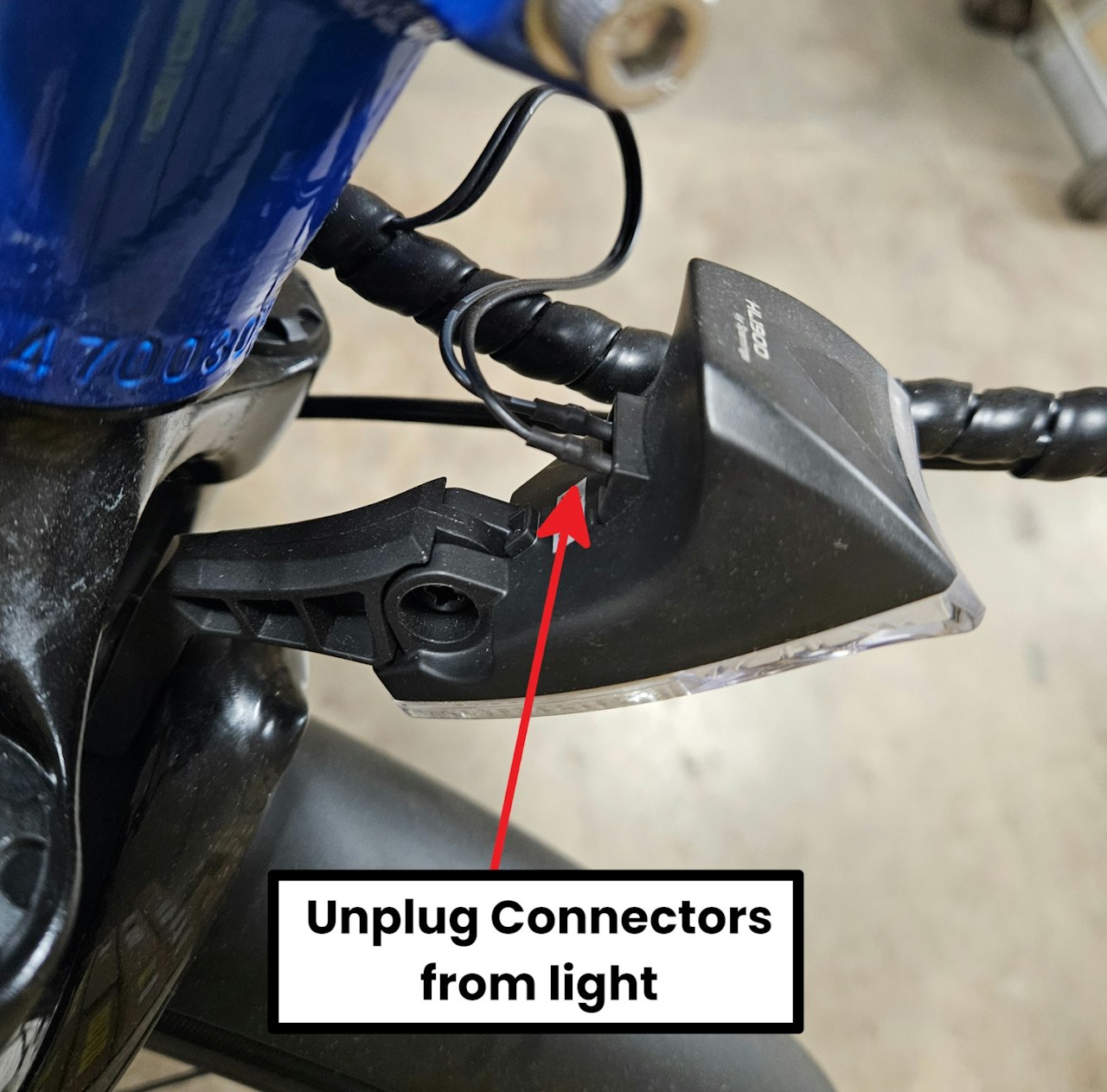 Remove the stock headlight from your bike if it is attached by your fender. The steps to do this can differ bike to bike but usually involved removing a bolt with a 5mm Allen Key.
