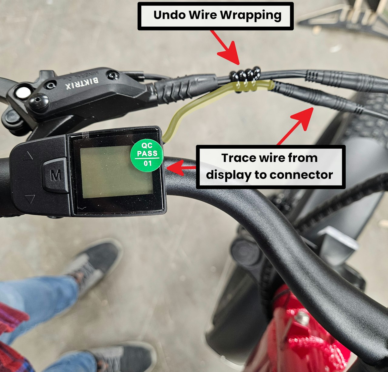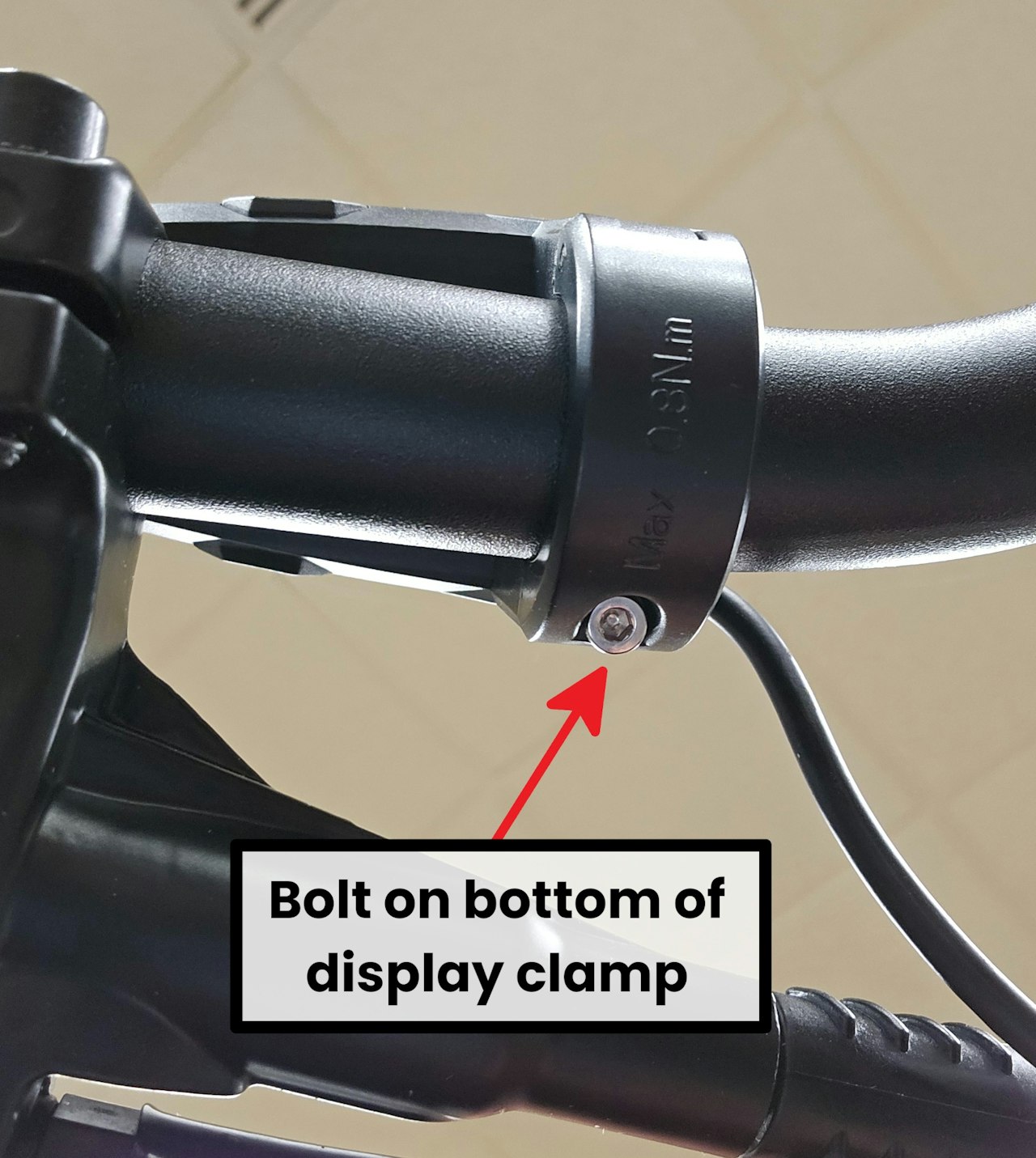 Take your 2.5mm Allen Key and locate the bolt at the BOTTOM of your display - on the clamp that attaches it to your handlebars. Undo this bolt by rotating it counterclockwise with the 2.5mm Allen Key.