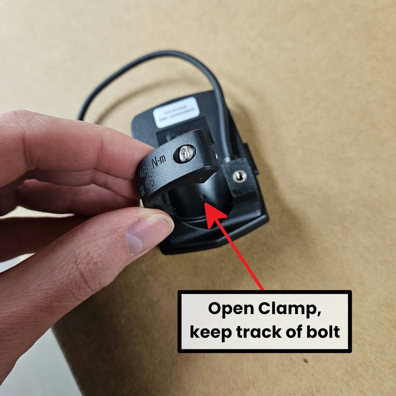 Open up the clamp once bolt had been losoened enough. Keep track of this bolt to secure the new display to the eBike!