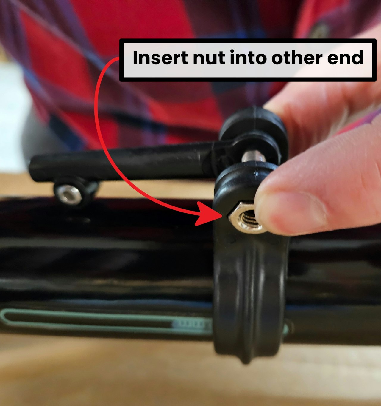 Put the included bolt into one end, and the nut into the other
