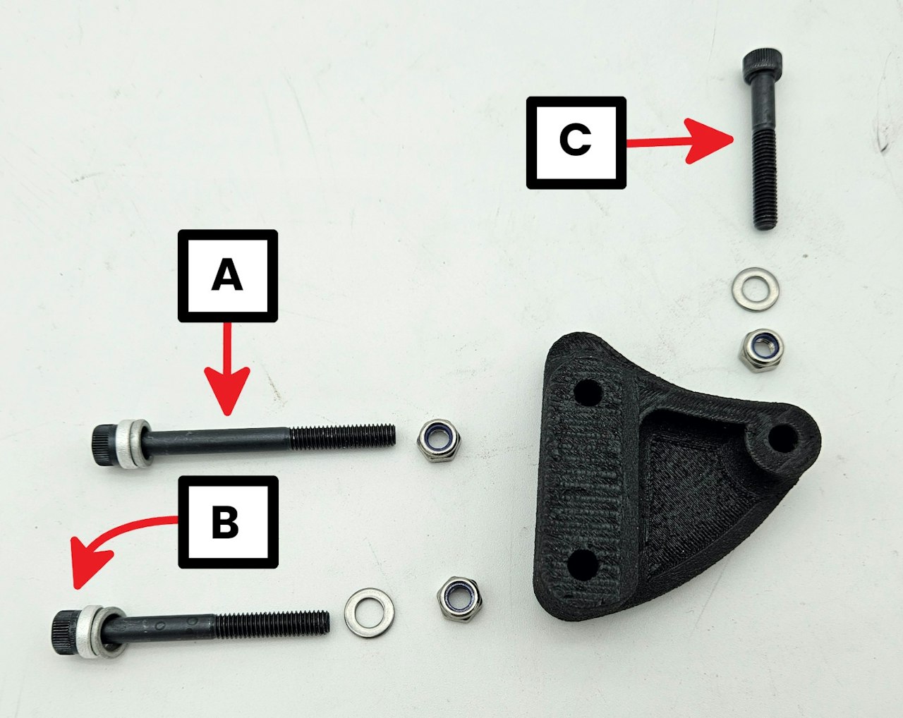 Consult the second and third images here for labels we will use to refer to the hardware and how it will be orientated on the mount.