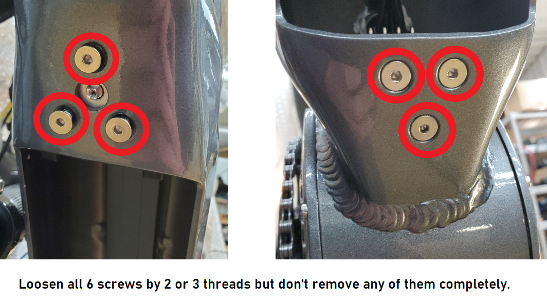 Loosen the 3 bolts on each side of the battery mount by about 2 turns (Ref Pic-2)
