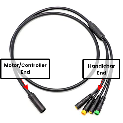 This guide will refer to two ends of the umbilical - the "Motor/Controller end" and the "Handlebar end" - consult the image attached for an explanation of which end is which (note that the "Motor/controller" end on your umbilical may look slightly different but the "Handlebar" end always looks very similar to this).