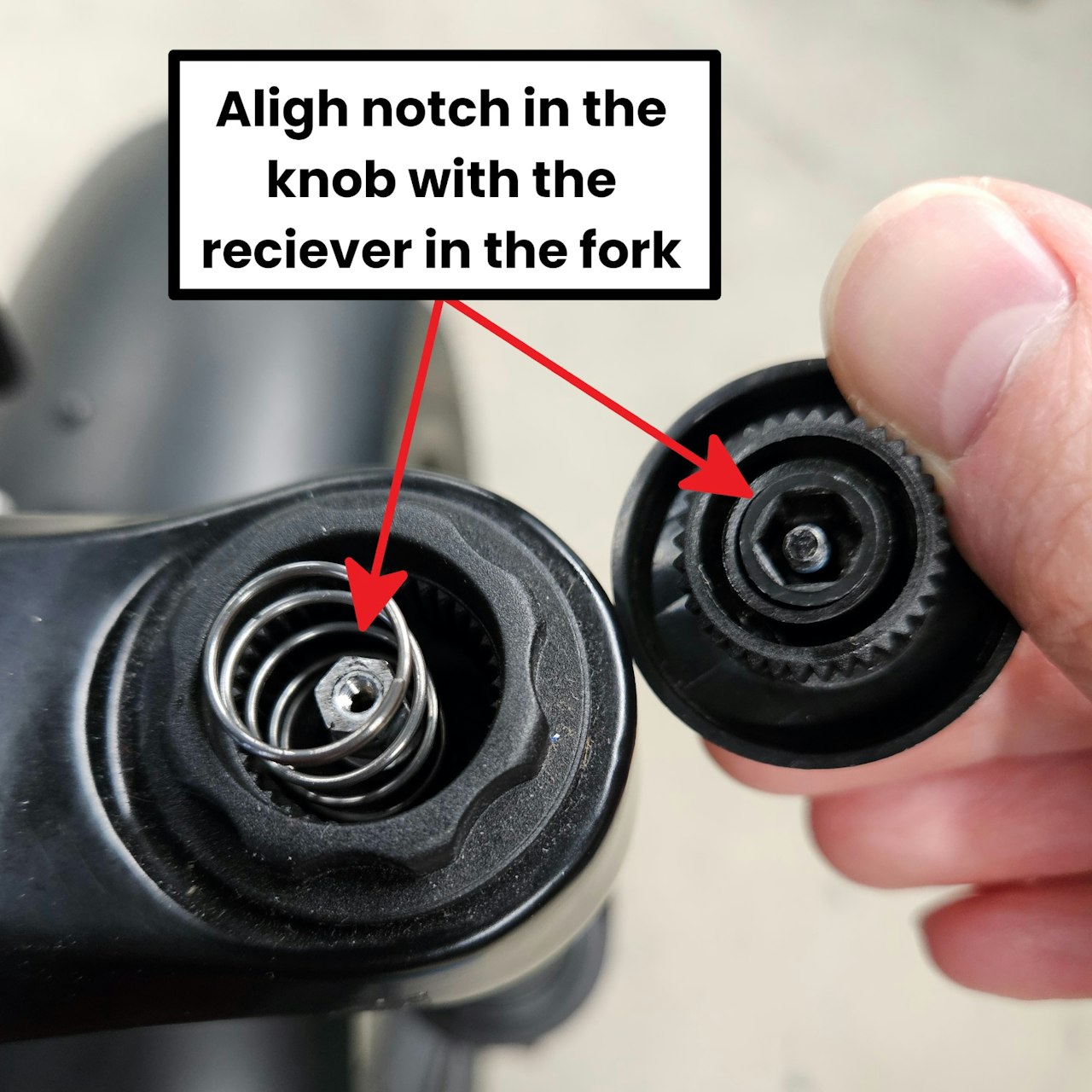 If your fork has trouble reaching both positions, return to Step 2, and check that the knob is properly seated.
