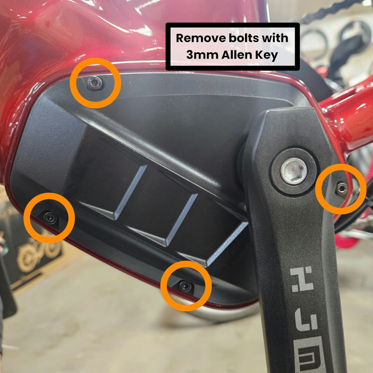Remove the following circled bolts with your 3mm Allen Key