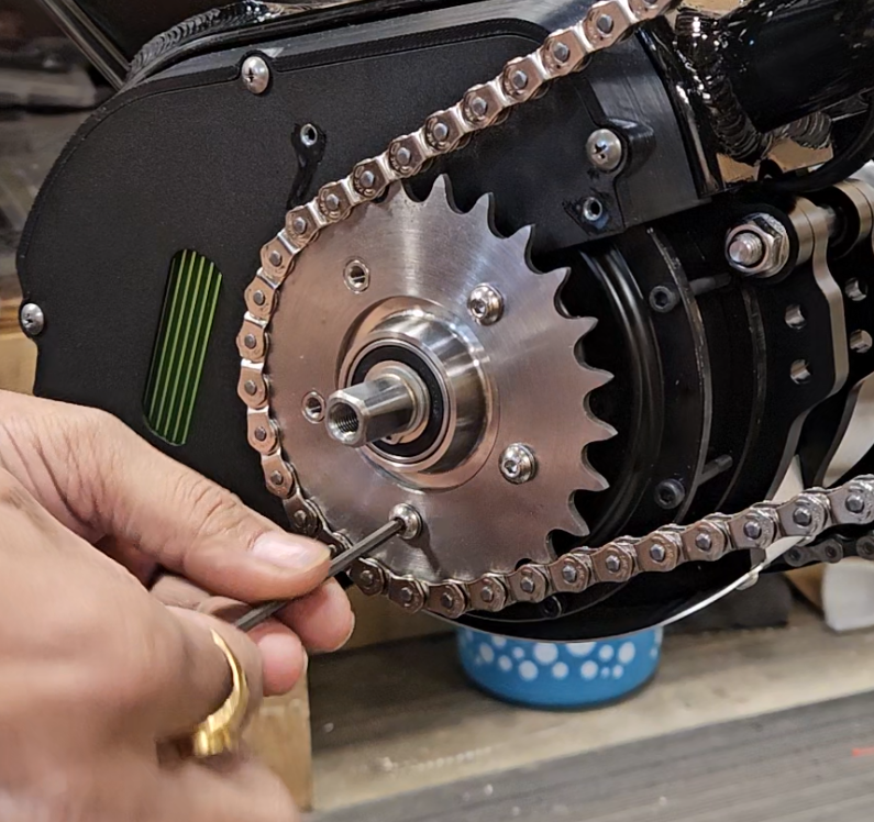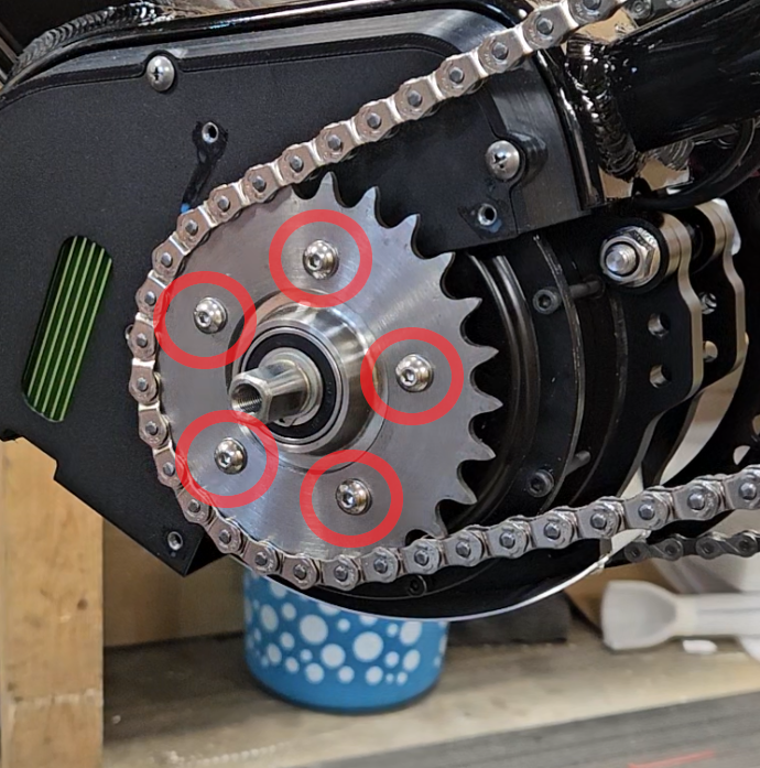 Reinstall the bolts into the holes of the sprocket to secure it to the motor using your 3mm Allen Key.