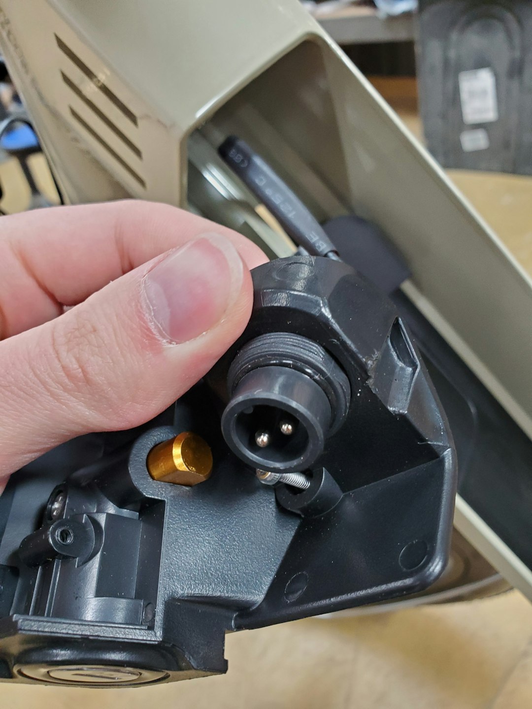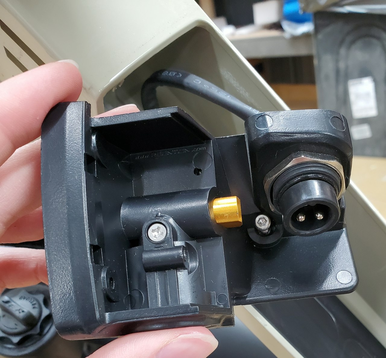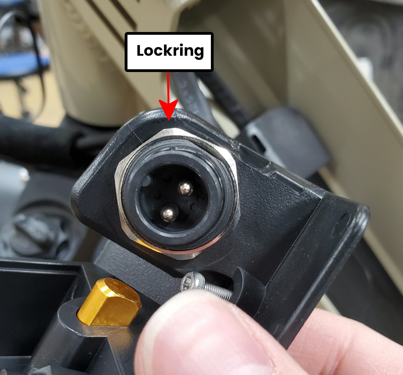 - With the lockring removed the power connector can be removed from the old Battery Lock and Mount.