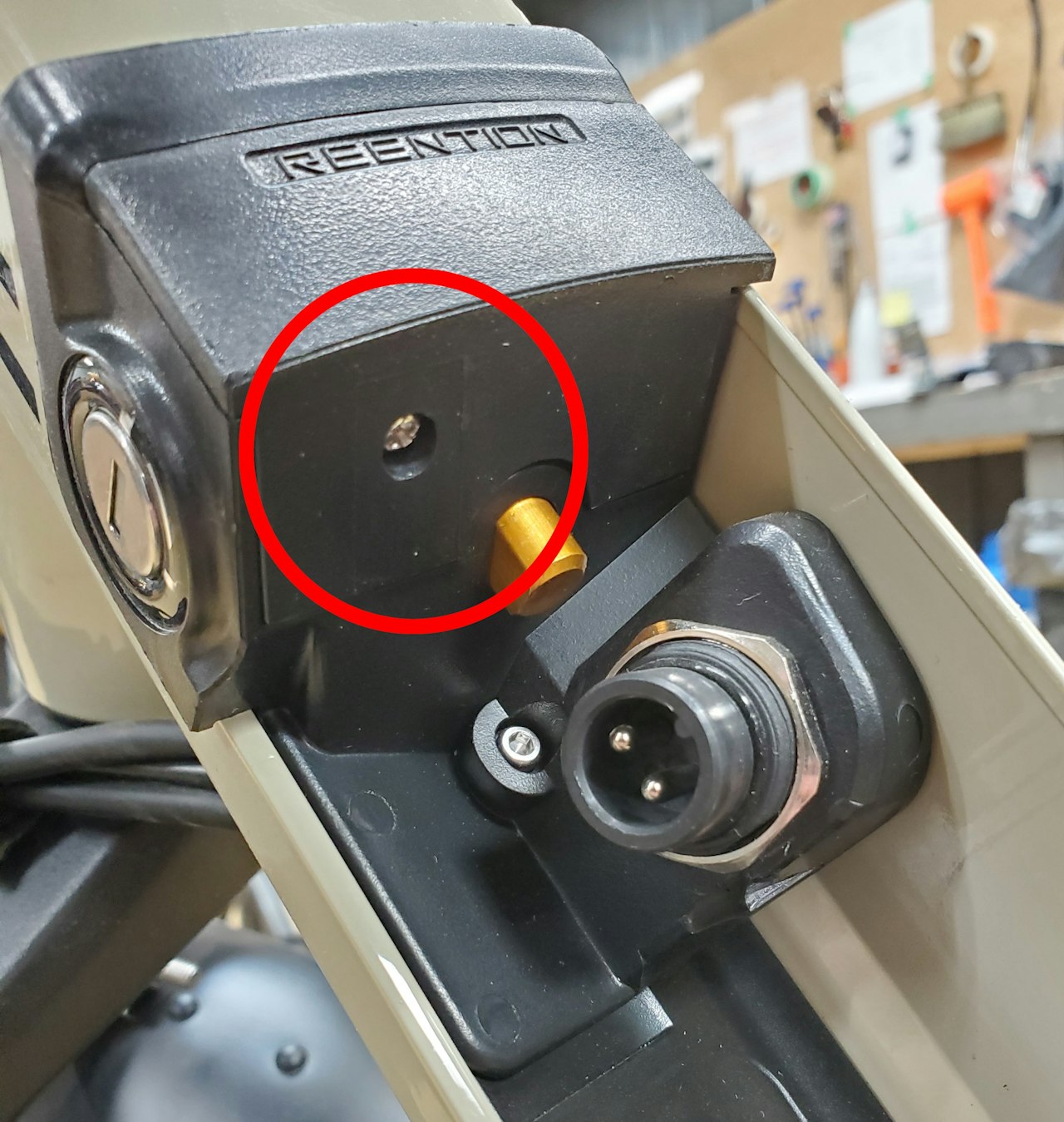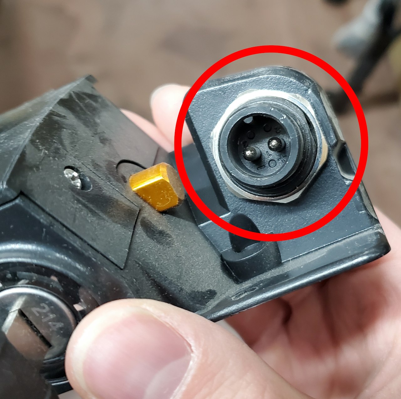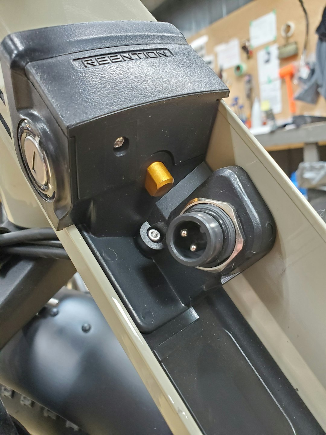 - With the silver lock ring holding the power connector snugly in place with pins correctly orientated you can slide the locking assembly back into place and reinstall it back into the bike following the same steps you took for removing it.