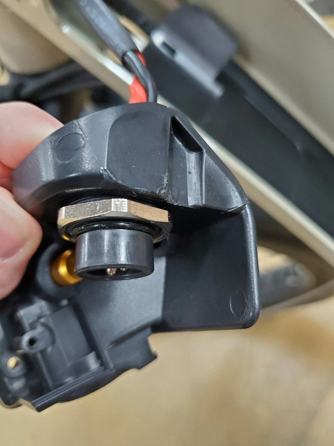 1. With the silver lock ring holding the power connector snugly in place with pins correctly orientated you can slide the locking assembly back into place and reinstall it back into the bike following the same steps you took for removing it.