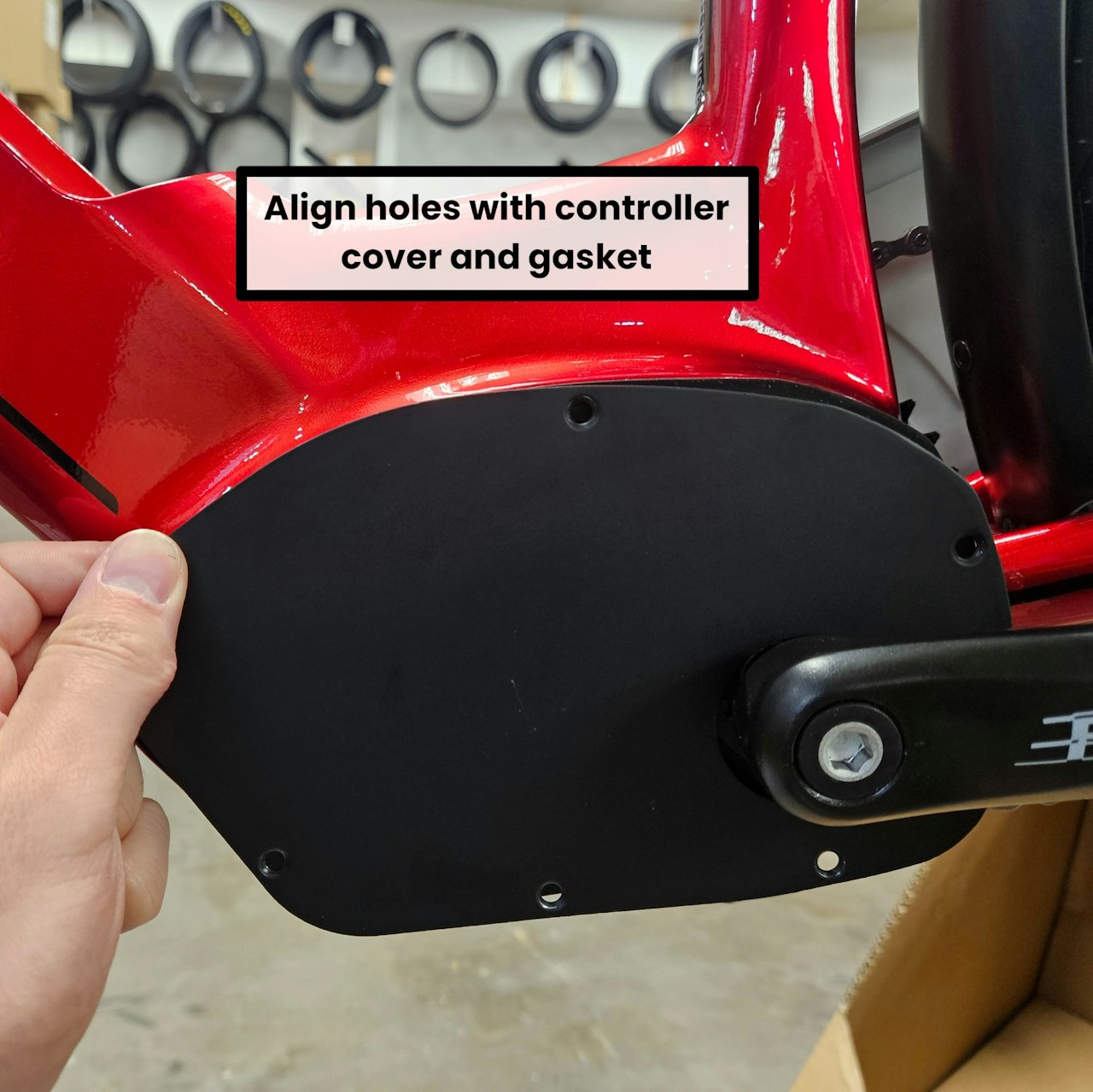Remove the 5 circled screws on the controller cavity cover of the eBike using a phillips screwdriver.