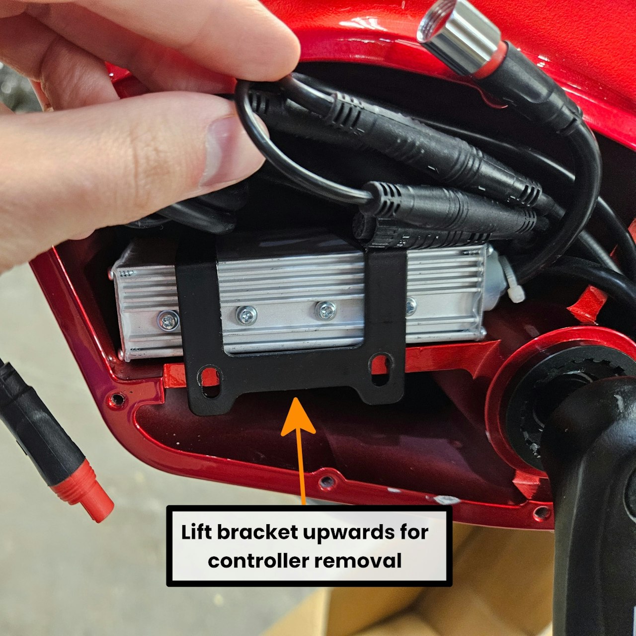 With the new controller's connectors now plugged in, install the new controller into the eBike - reversing the steps you followed to remove the old controller.