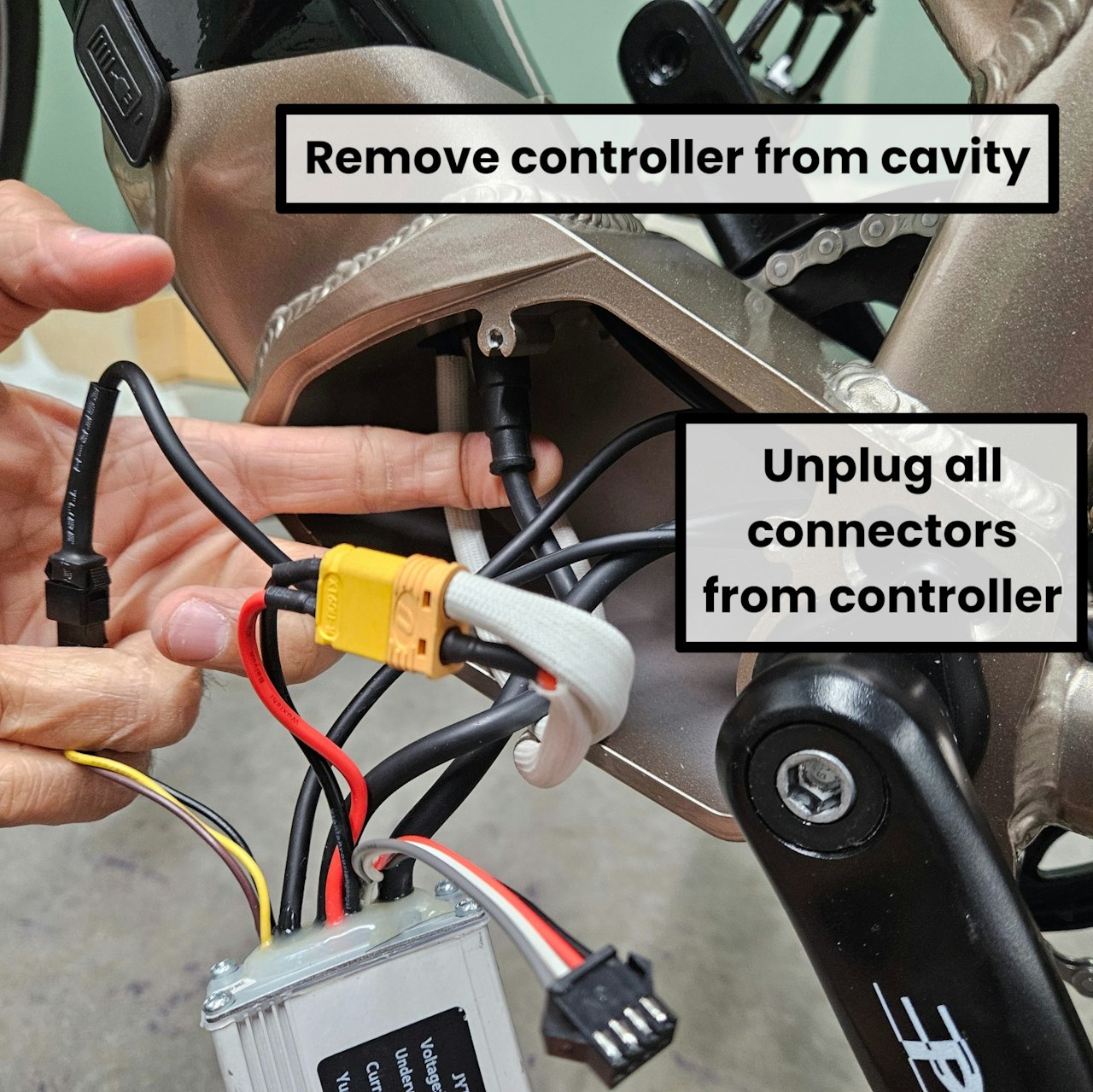Take a picture of how ALL connectors are attached on the controller and eBike to reference when reinstalling, in case you encounter any trouble.